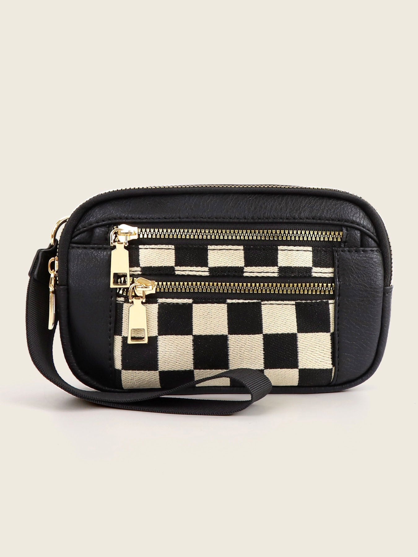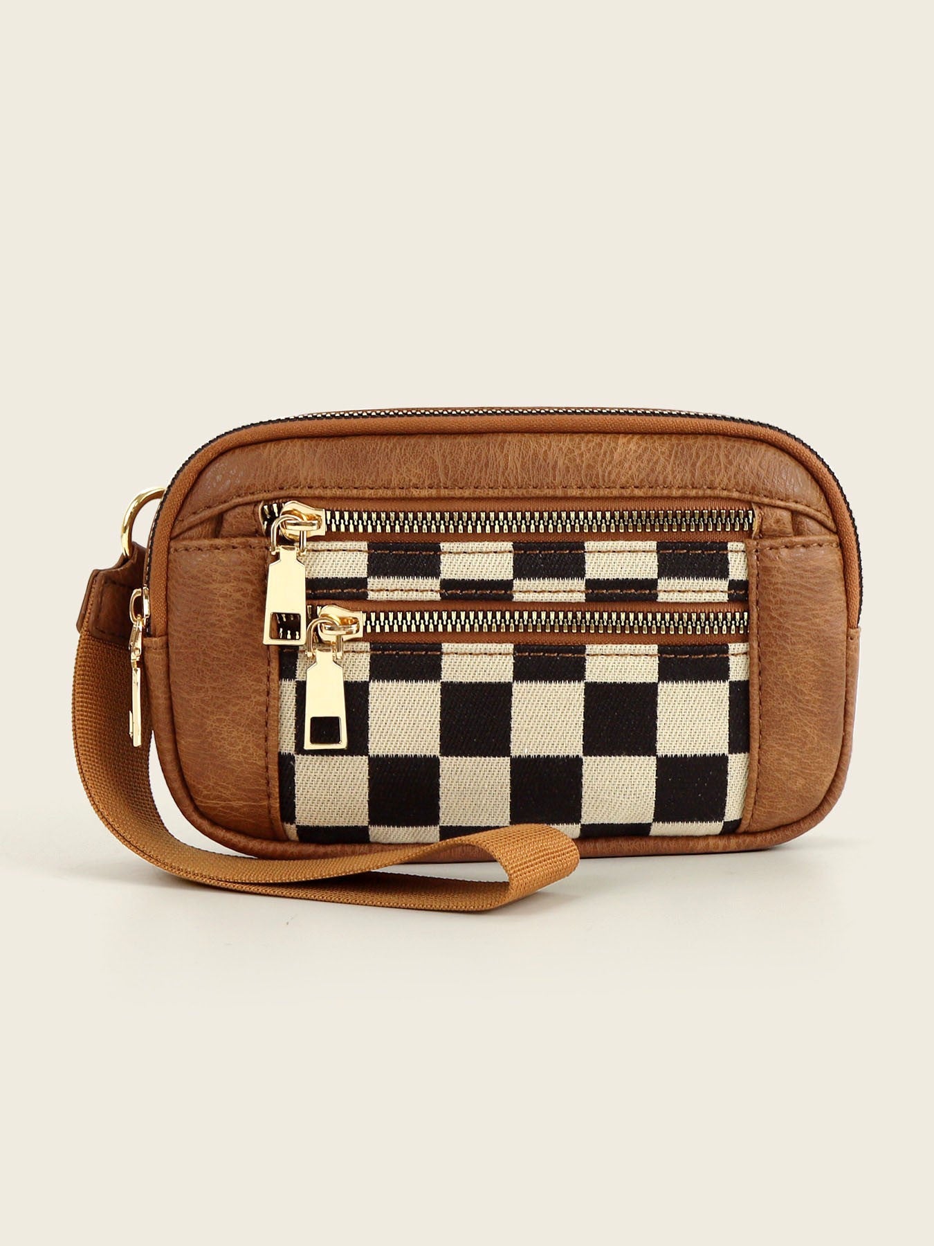 Checkered Printed Wristlet Wallet Pouch