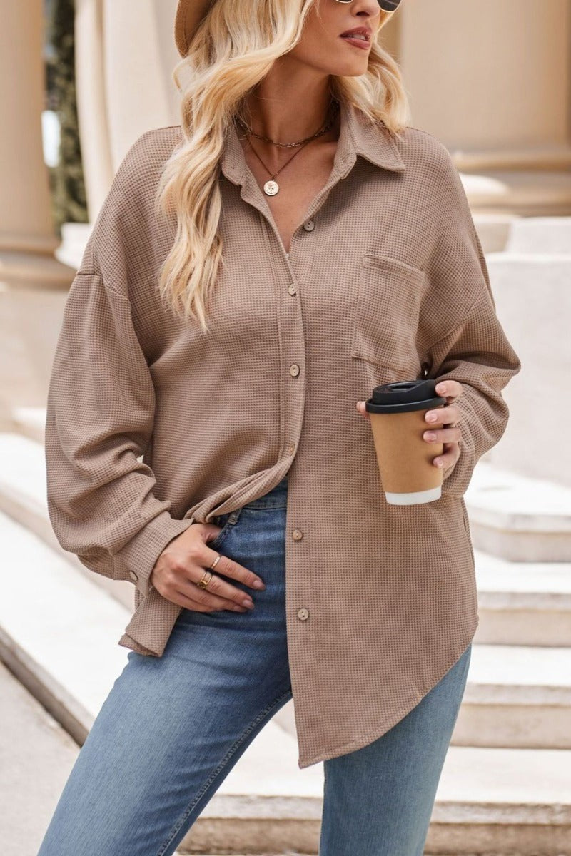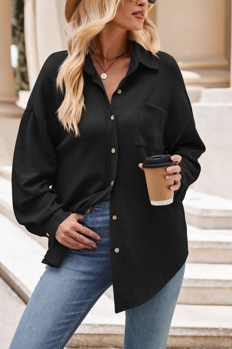 Oversized Waffle Knit Button Down Casual Shirt / Shacket