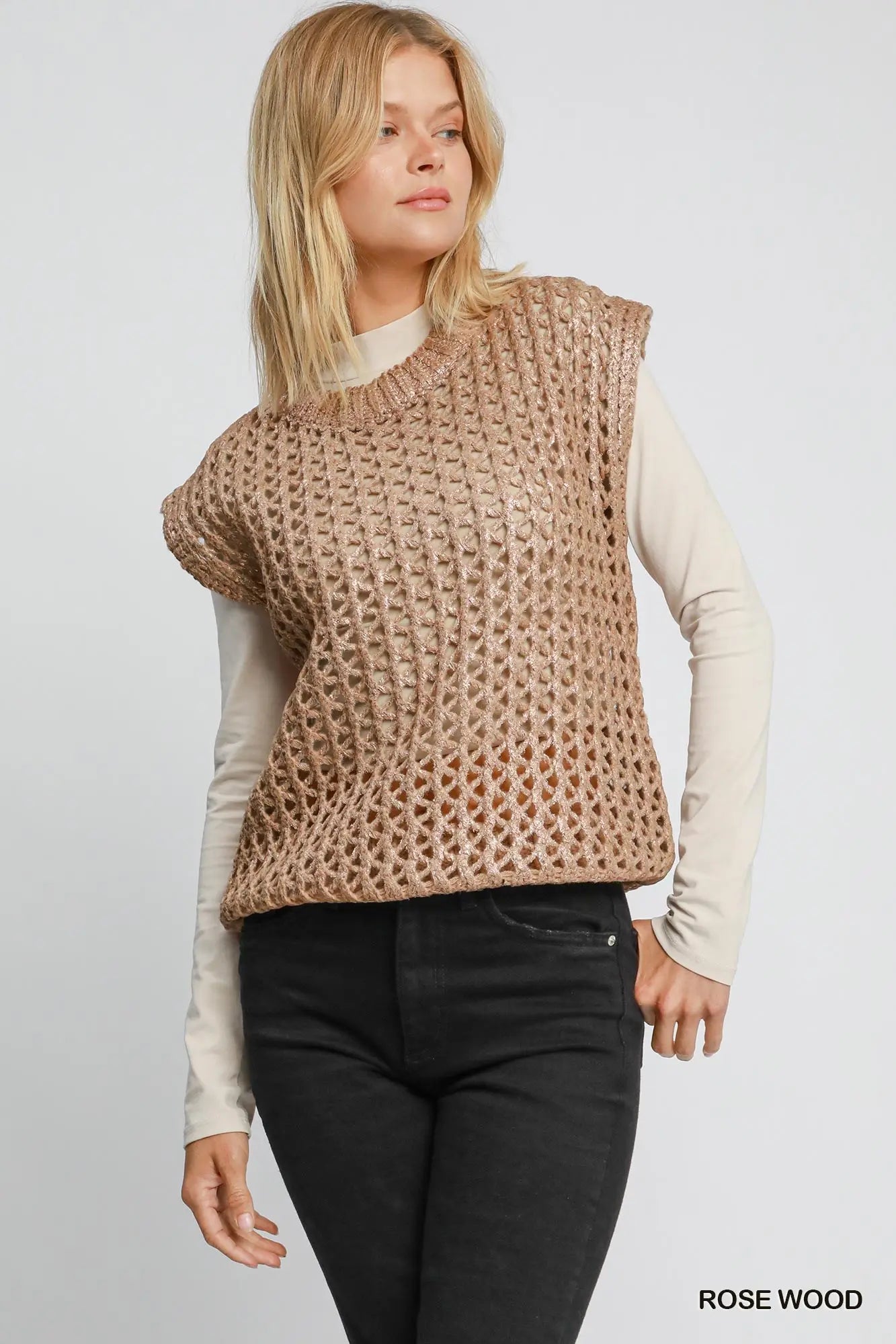 Umgee Brand Metallic Foil Sweater Vest - Great for Layering