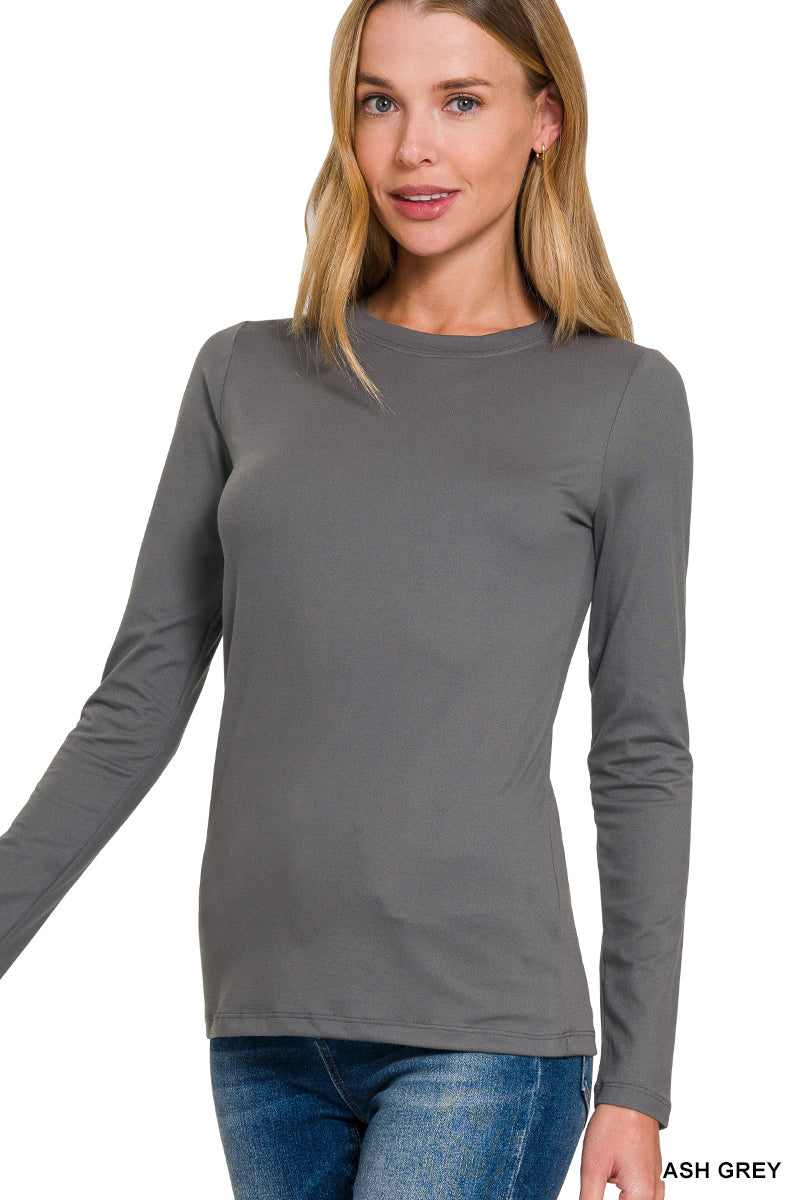 Brushed Microfiber Long Sleeve Fitted Round Neck Tee