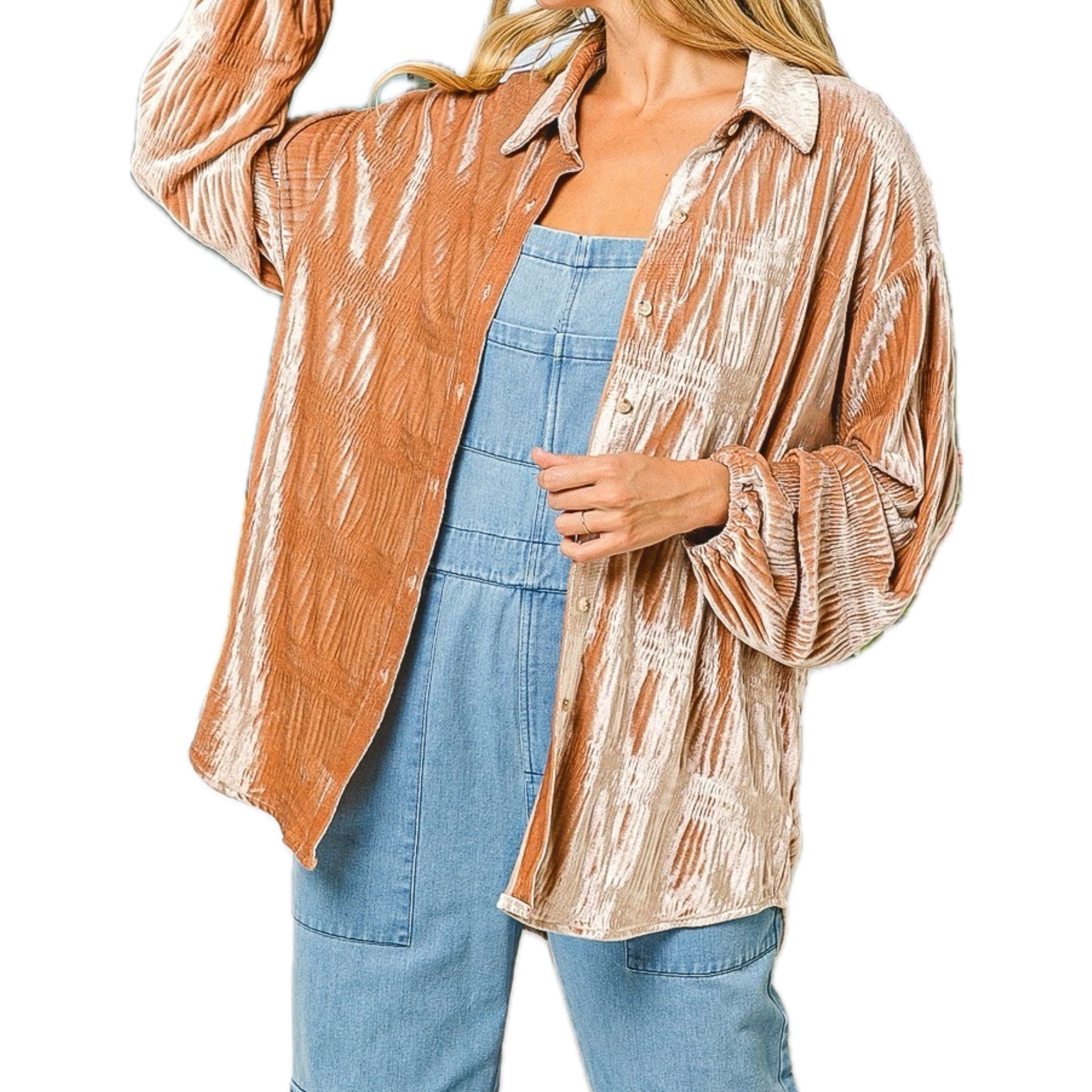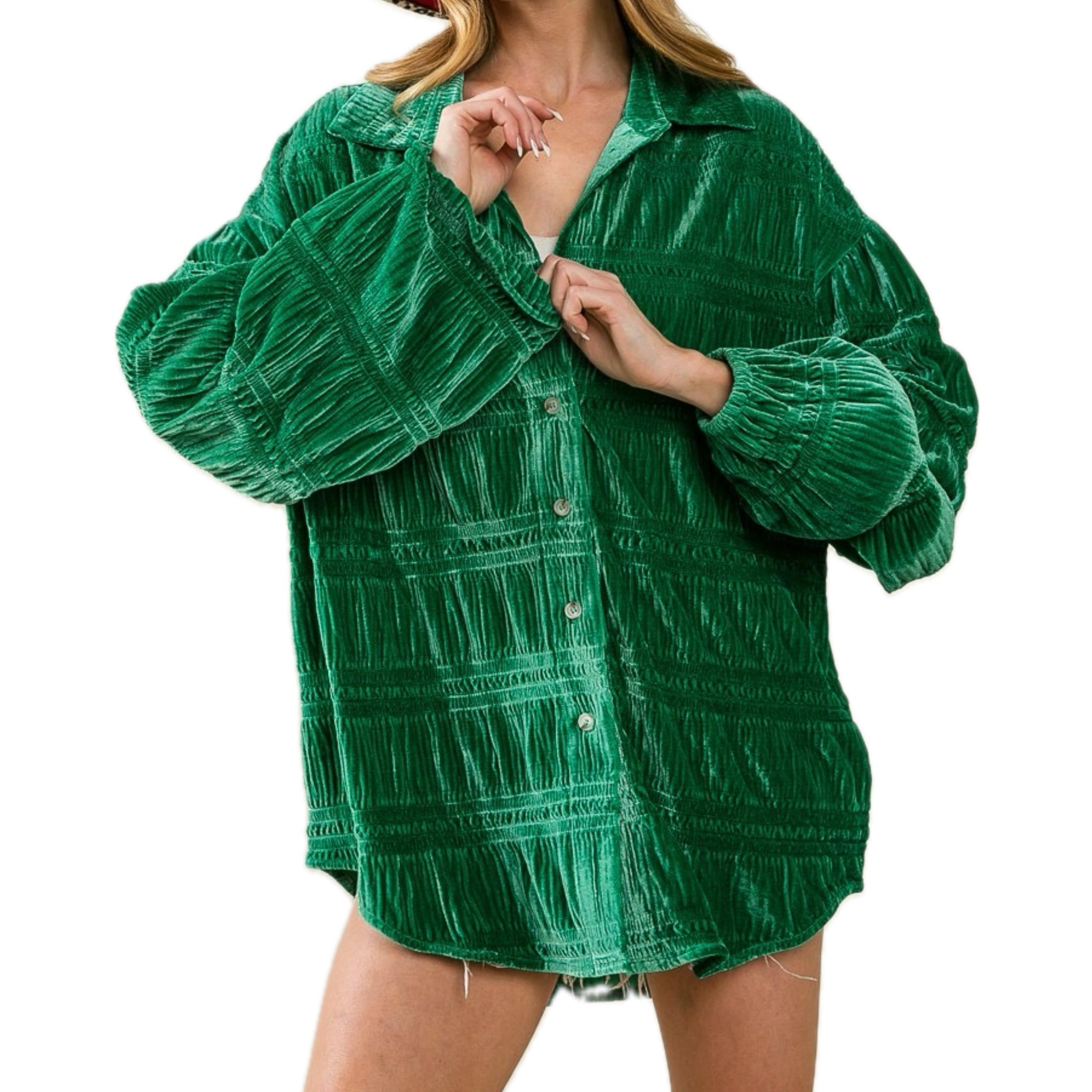 Bibi Brand Wrinkle Effect Tiered Shirring OverSized Velvet Top/ Shacket