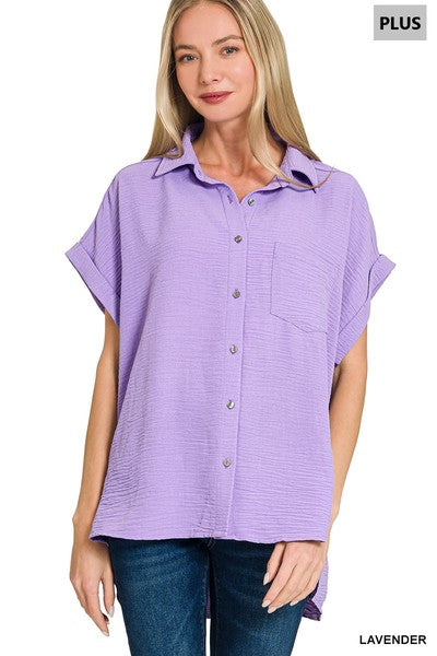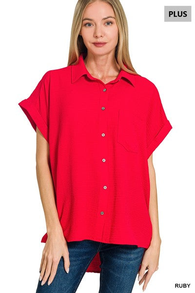 Zenana Brand Plus Size Woven Air Flow Button Down Top