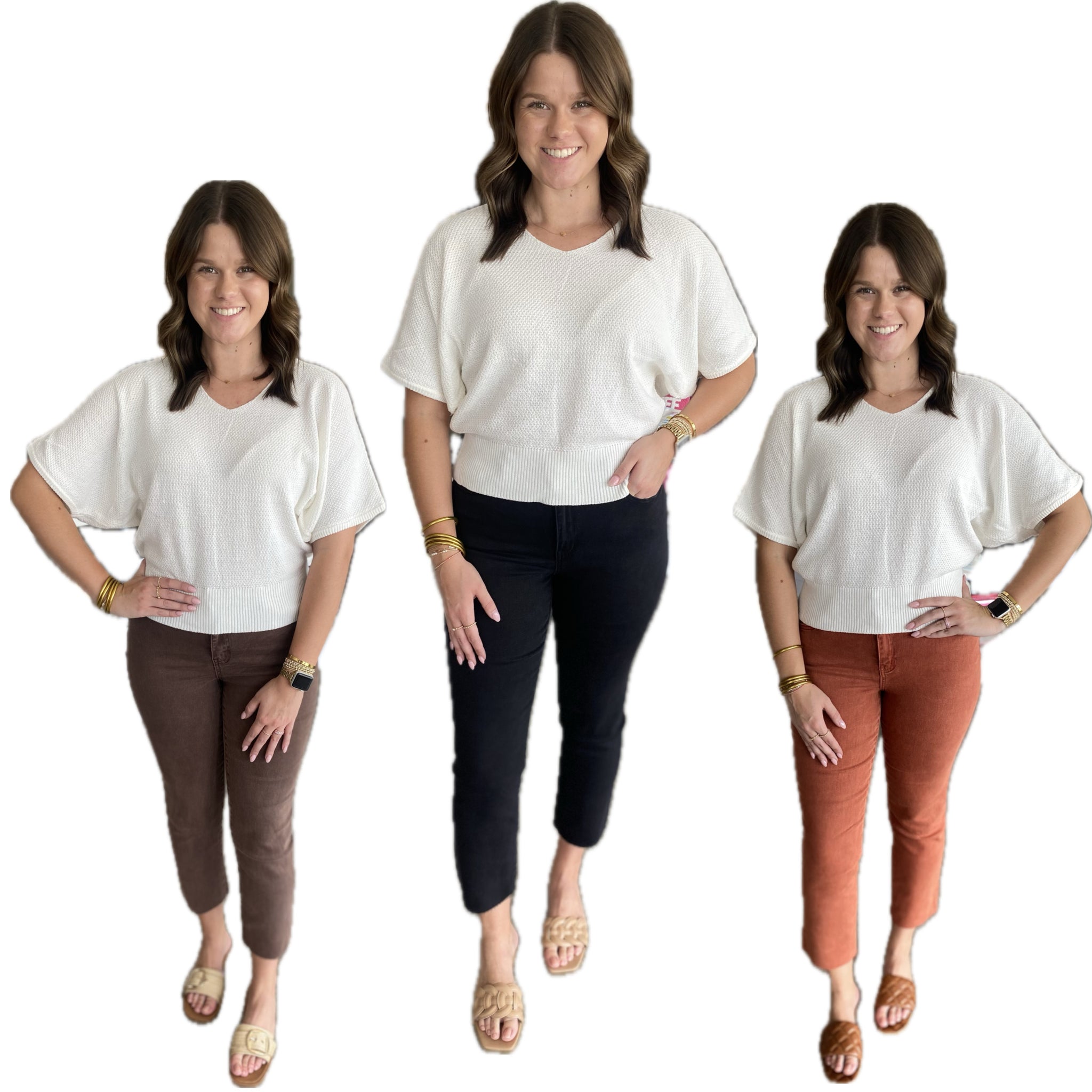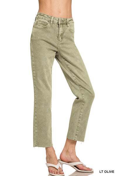 Zenana Brand Cropped Frayed Cutoff Straight Wide Legged Jeans