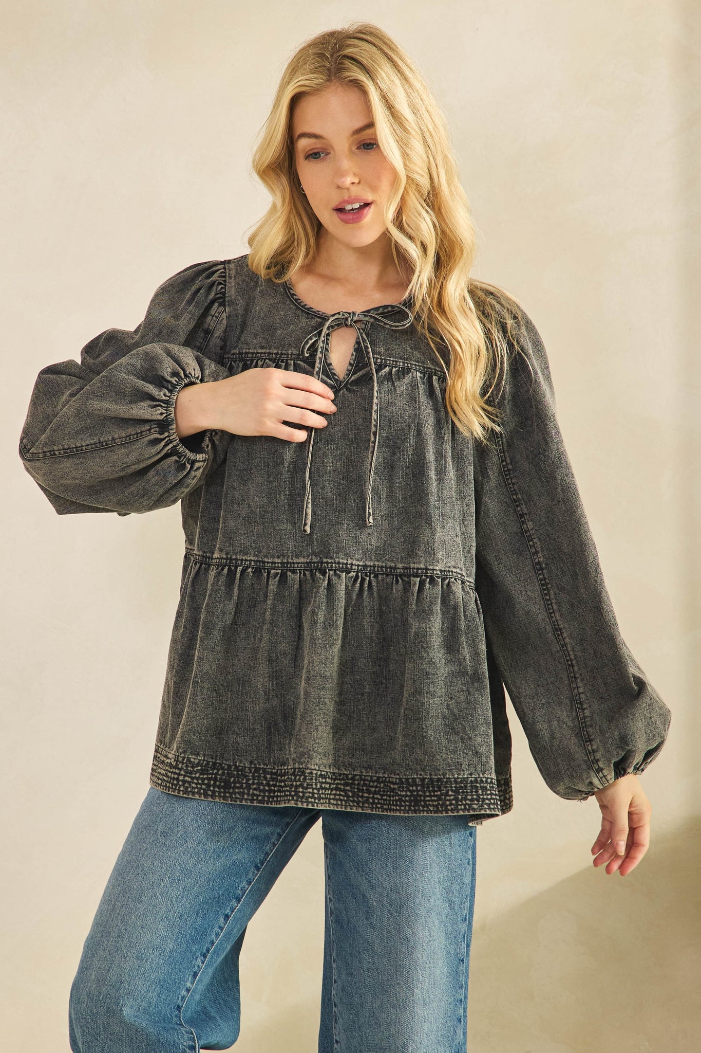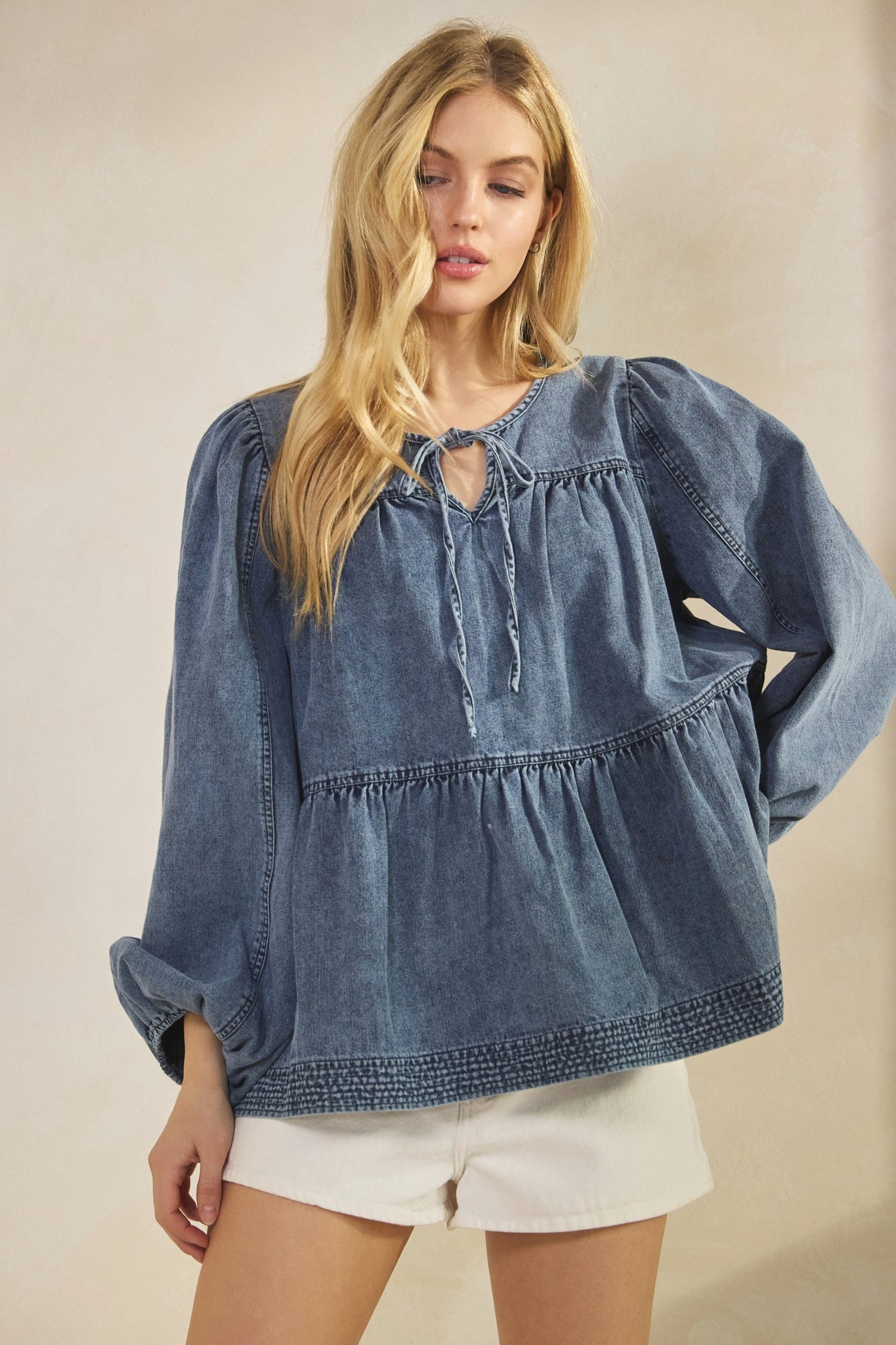 Sage + Fig Brand Tiered Denim Top
