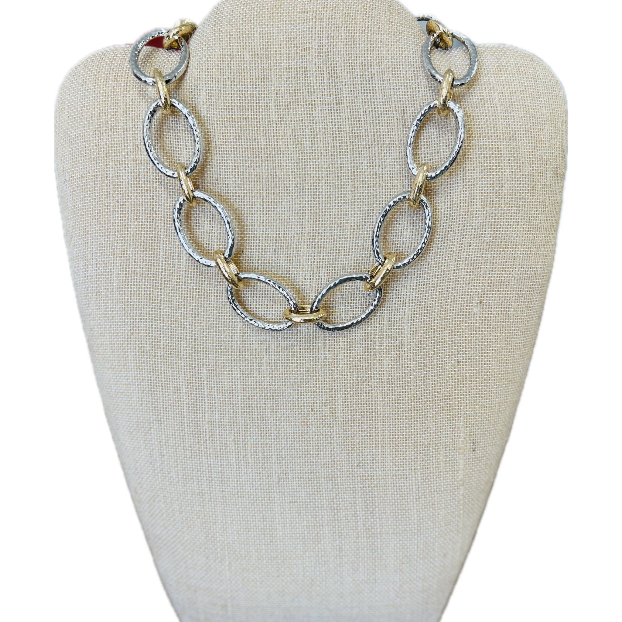 Mixed Metals Hammered Textured Style Necklace