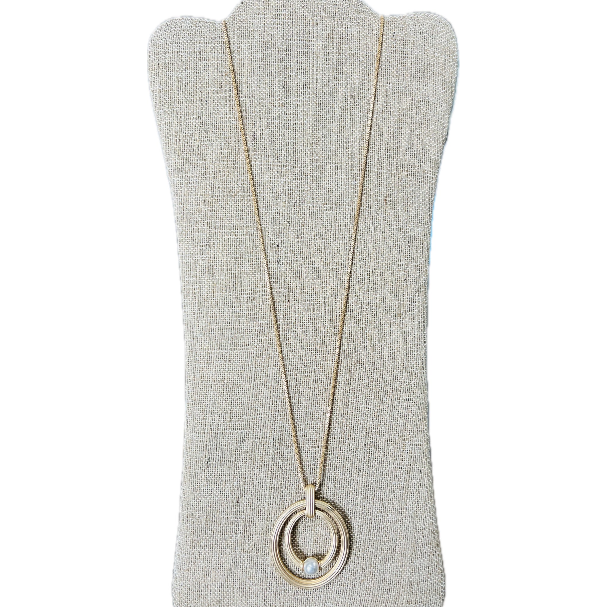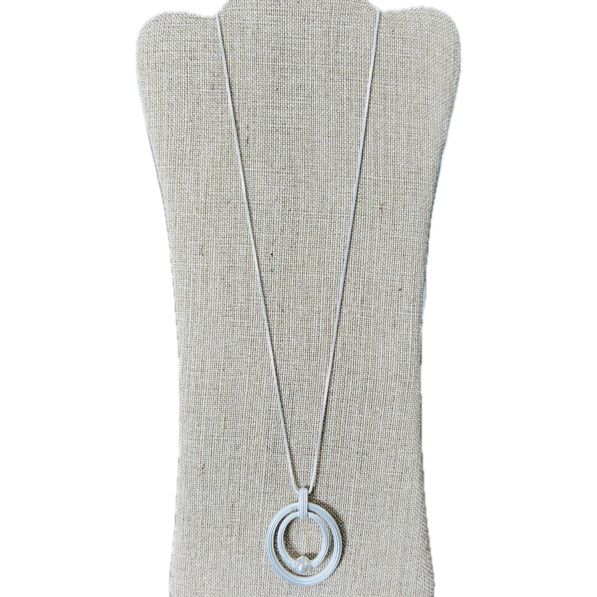 Matte Finish Long Box Chain Necklace with Oval Pearl Pendant
