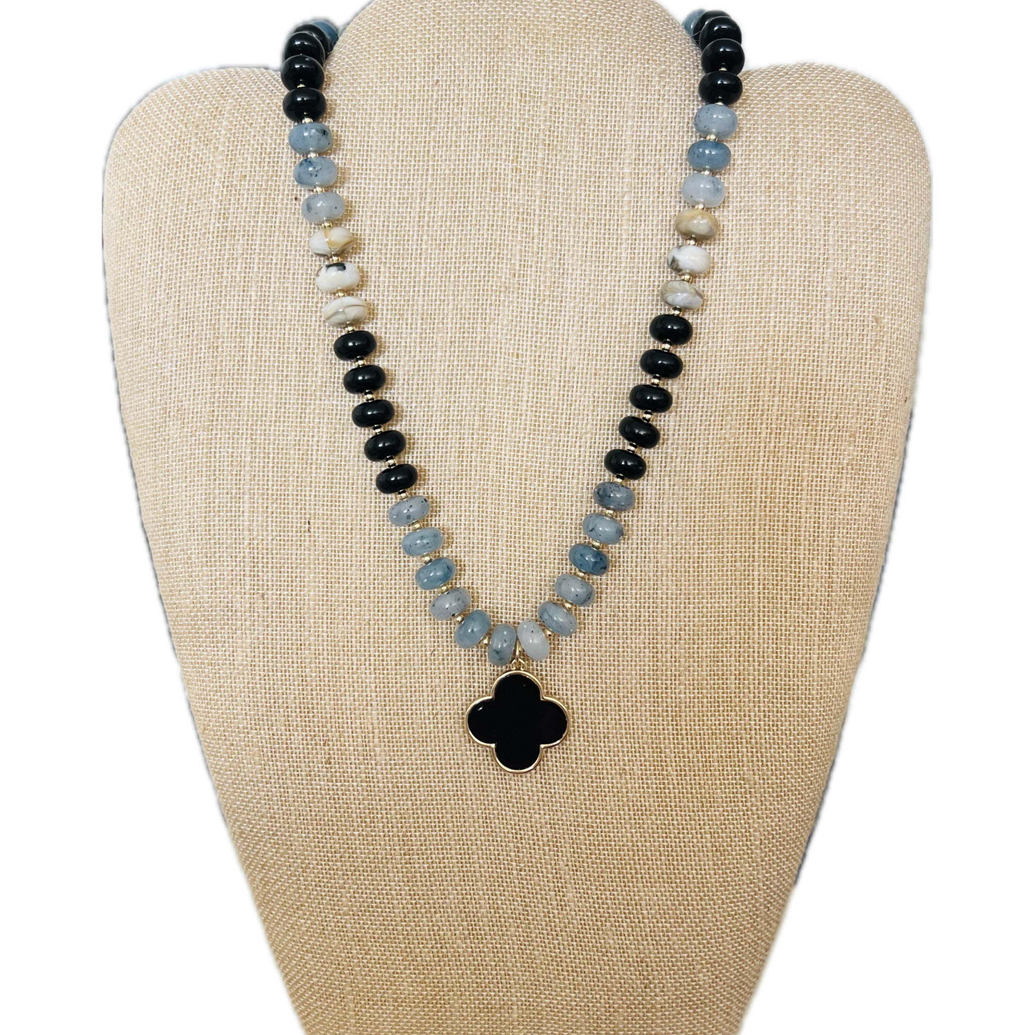 Marbleized Beads with a Clover Pendant