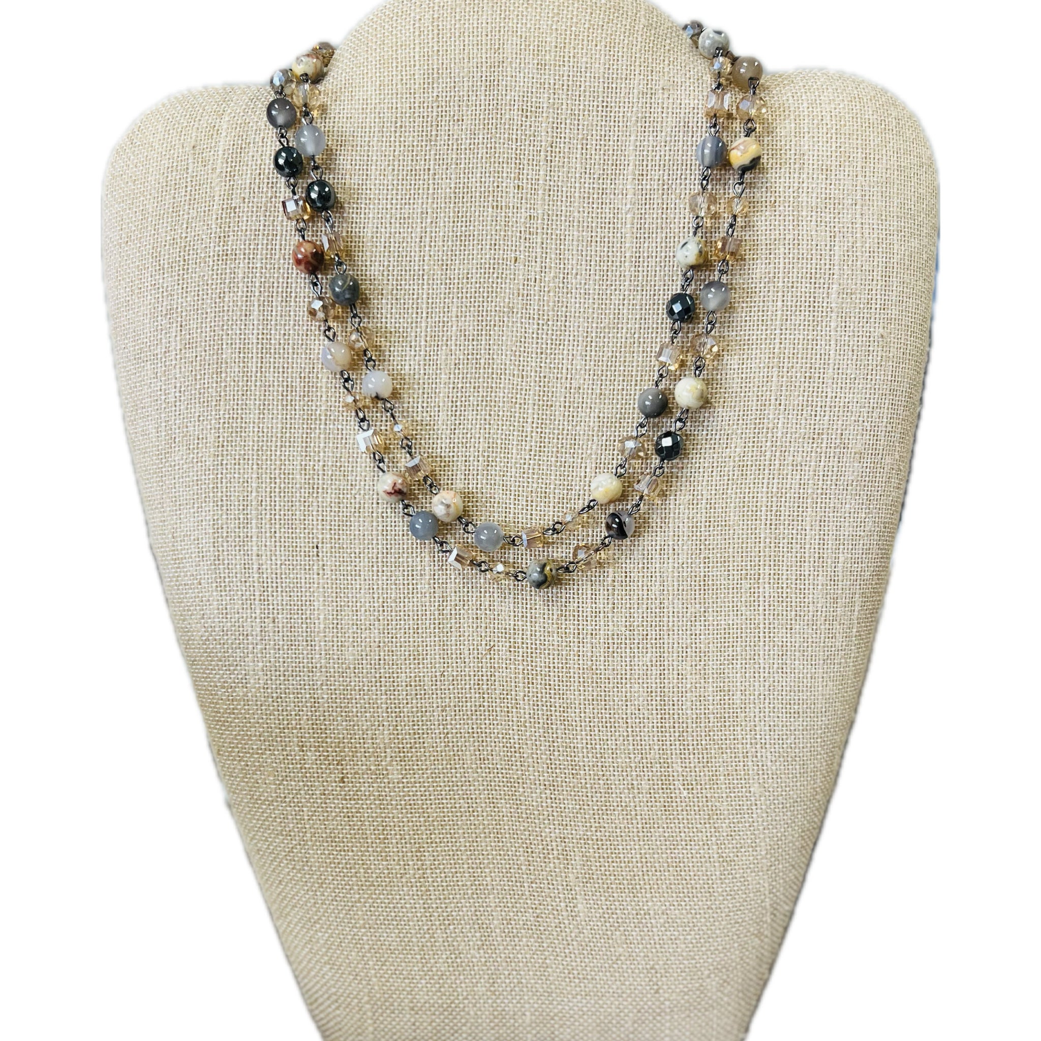 Unique and Natural Stones and Beads with Knotted Style Chain.