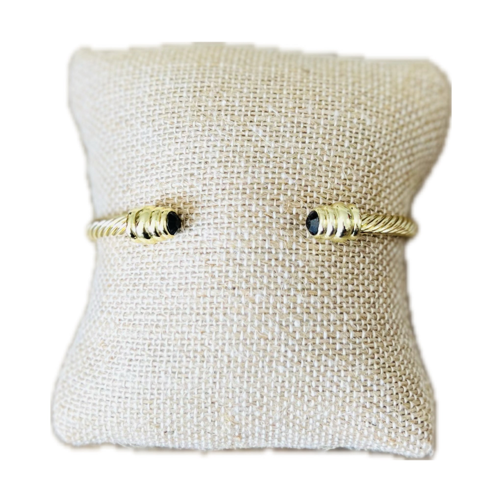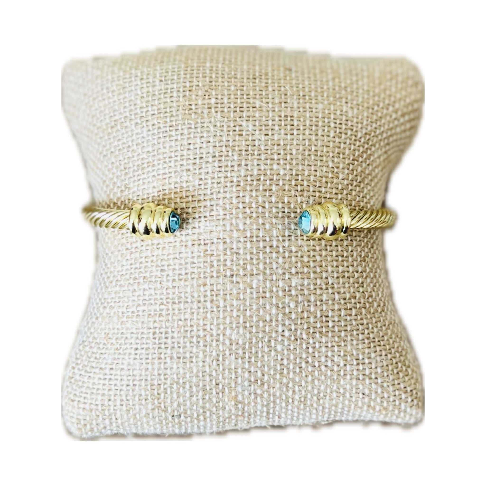 Colored Gem Stone Tip Twisted Cable Cuff Bracelet